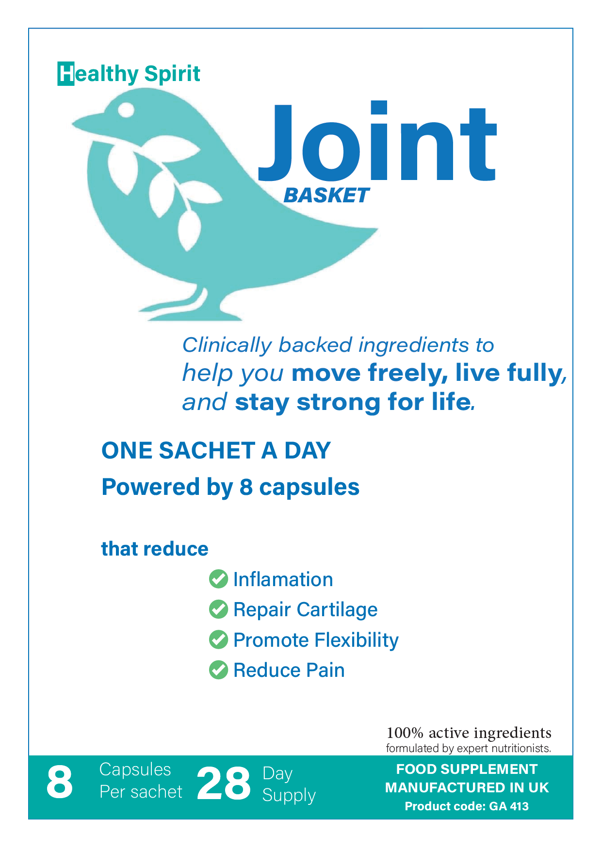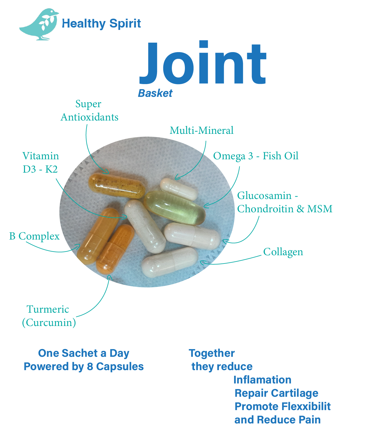 Healthy joints and strong bones are the foundation of an active, pain-free life. Our Joint Basket is designed to provide full-spectrum nutritional support, combining 8 powerful elements that work in synergy to protect cartilage, reduce inflammation, strengthen bones, and promote mobility.